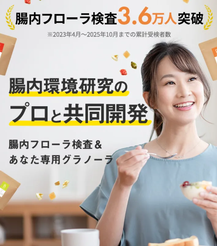 - 腸内フローラを調べて自分専用のグラノーラを食べられる