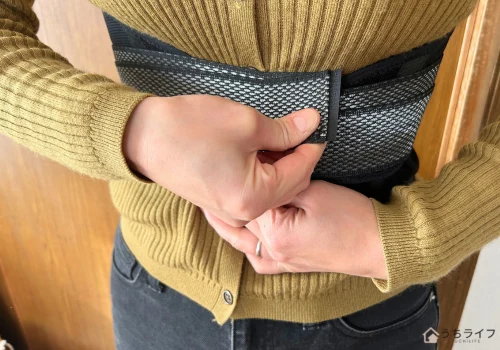 直に着けると、肌への刺激を感じる人もいます。薄手のインナーの上から着用すると、チクチク感やズレを抑えやすくなります。 - 補助ベルトを使って細かく調整する