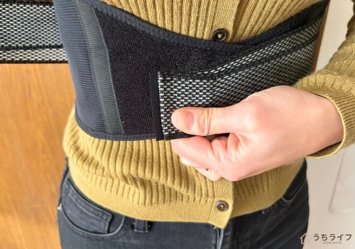 また、補助ベルトで締め具合を調整できるため、仕事中は弱め、家で短時間使うときは少し強めなど、使い分けしやすい点も便利でした。