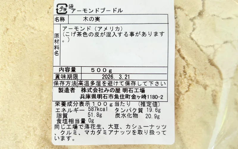 アーモンドプードルは商品によって粒度がかなり違います。仕上がりに影響が出るため、用途で選ぶのが正解です。