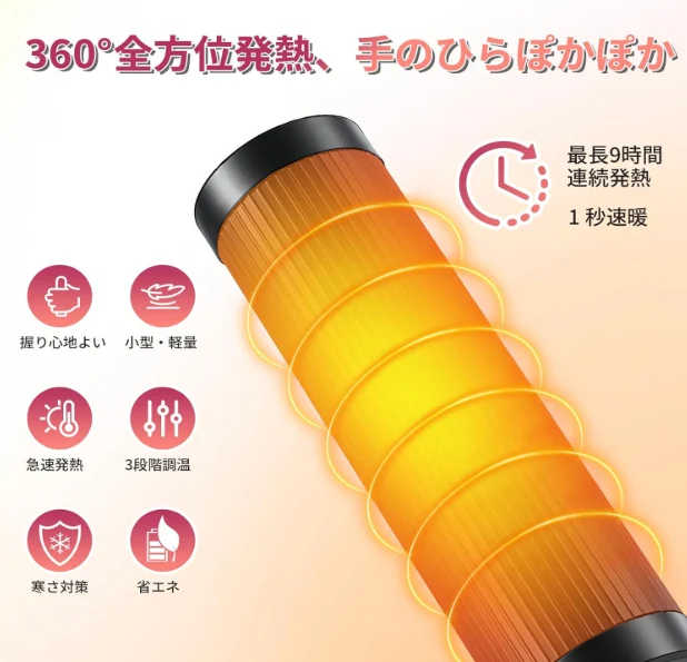 | HUAYAN カイロ | ![]() | 2,451円 | 充電カイロ | USB-C | — | 0.8円/回 | 3段階 | 100×50×23 | 分離2WAY |