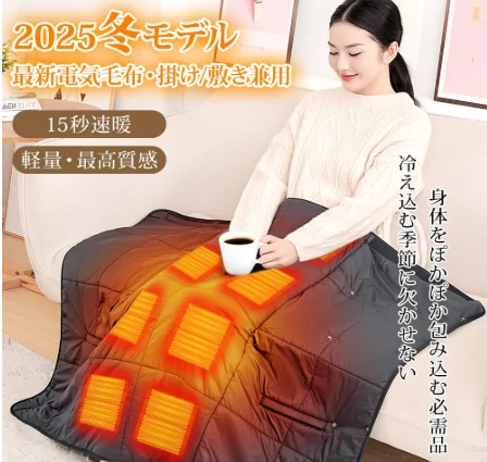 着る・敷く・掛けるの3WAYで活用でき、テレワークやソファでのリラックスタイムなど幅広いシーンに対応。従来モデルから約17%軽量になり動きやすさもアップ。肩紐調整や足ポケットなど快適に過ごせる仕組みも充実しています。2時間オフと8時間オートオフ機能も備え、安全性を求める人にも安心して使える一枚です。
