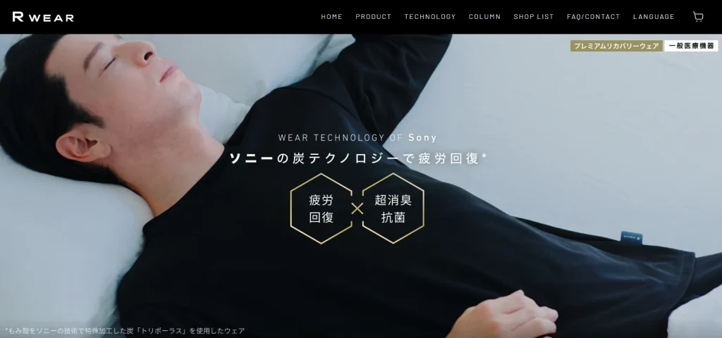 本ページで紹介している、ソニーの素材研究から生まれたリカバリーウェアです。