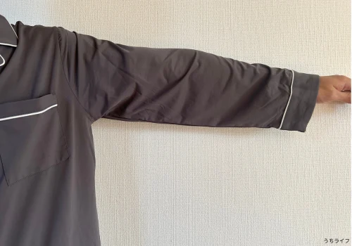 袖口も広めで締めつけがなく、まさに“脱力して眠れる”ような着心地です。