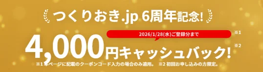 つくりおき.jpをお試しするなら、今おこなわれている4,000円OFFキャンペーン期間が最もお得です。